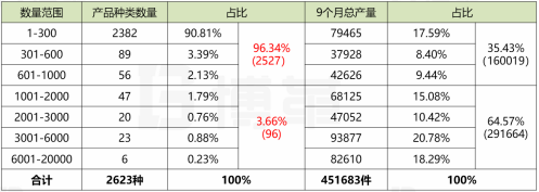 產品產量分析: